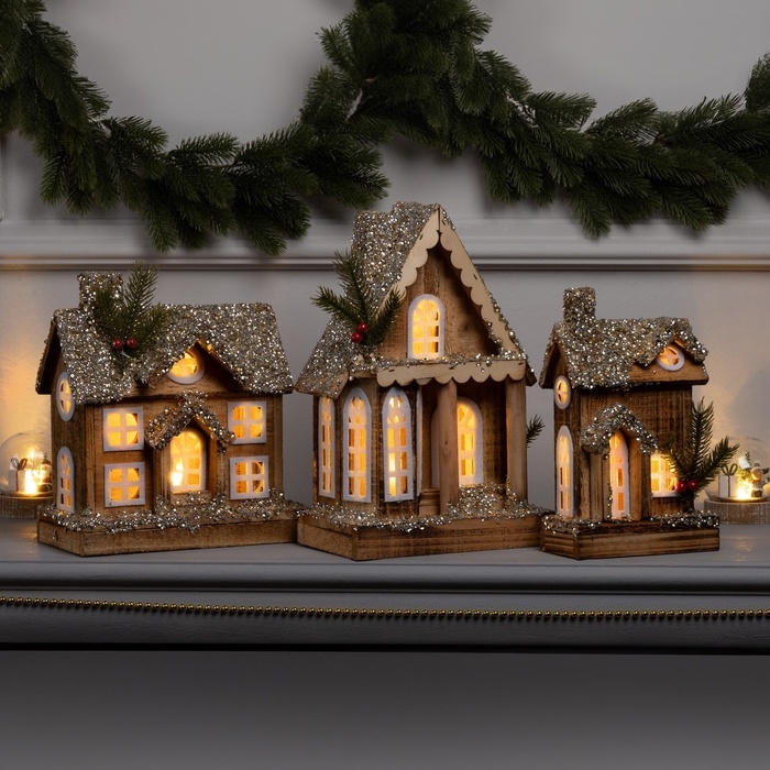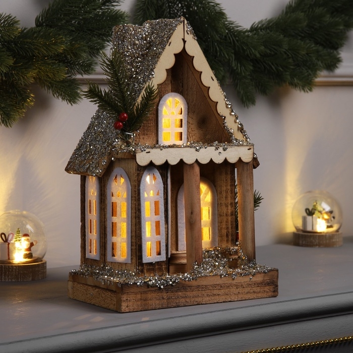 Фигура деревянная "Изба", 21х12х23 см, 5 LED, батарейки AAx2 (не в комплекте), свечение теплое белое