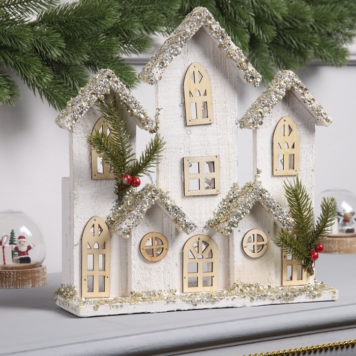 Фигура деревянная "Хижина", 28х29х7 см, 10 LED, батарейки AAx2 (не в комплекте), свечение теплое белое