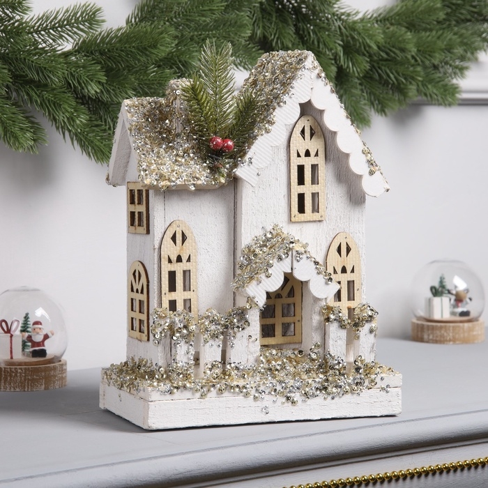 Фигура деревянная "Хижина", 28х21х11 см, 5 LED, батарейки AAx2 (не в комплекте), свечение теплое белое