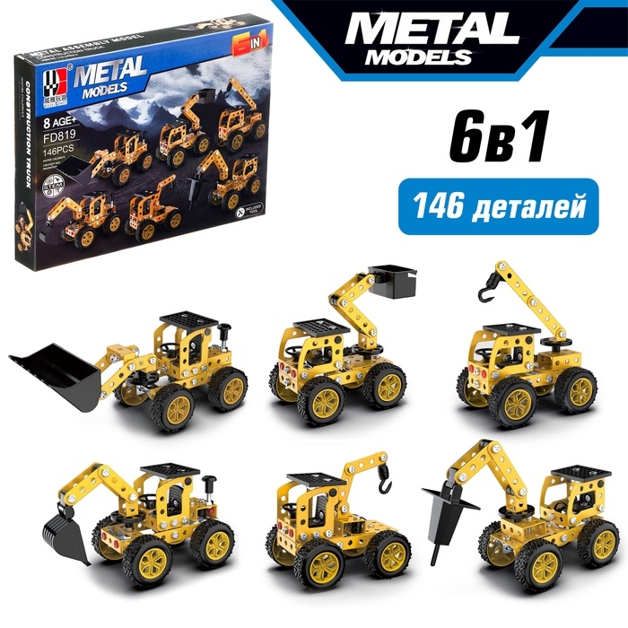 Конструктор металлический «Строительная техника», 6 вариантов сборки , 146 деталей