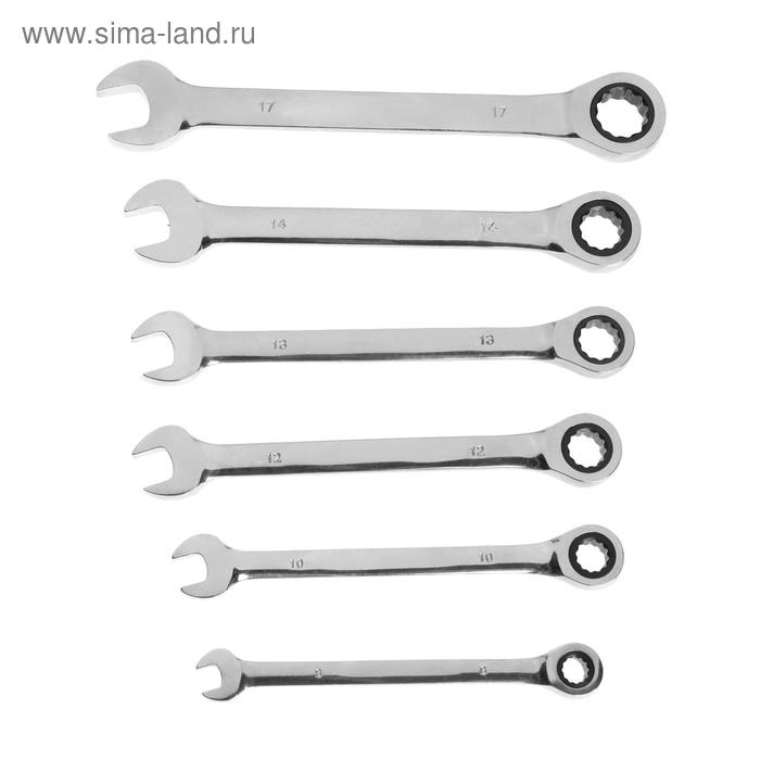 Набор ключей комбинированных трещоточных ТУНДРА, CrV, 72 зуба, 8 - 17 мм, 6 шт.