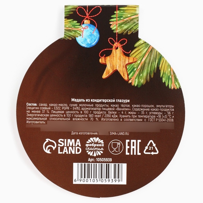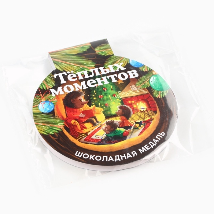 Шоколадная медаль на открытке "Тёплых моментов"