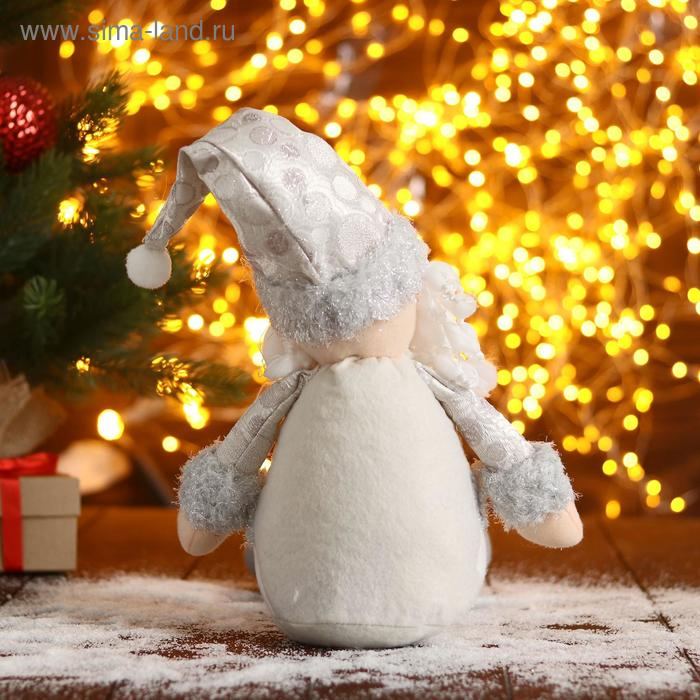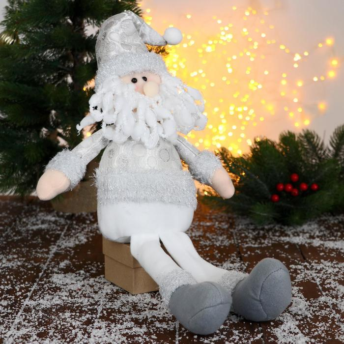 Мягкая игрушка "Дед Мороз в шапочке с кружочками-длинные ножки" 15х45 см, серебристо-белый
