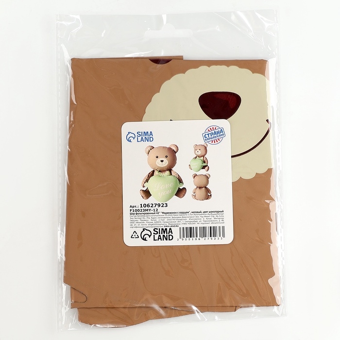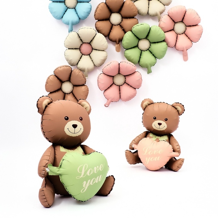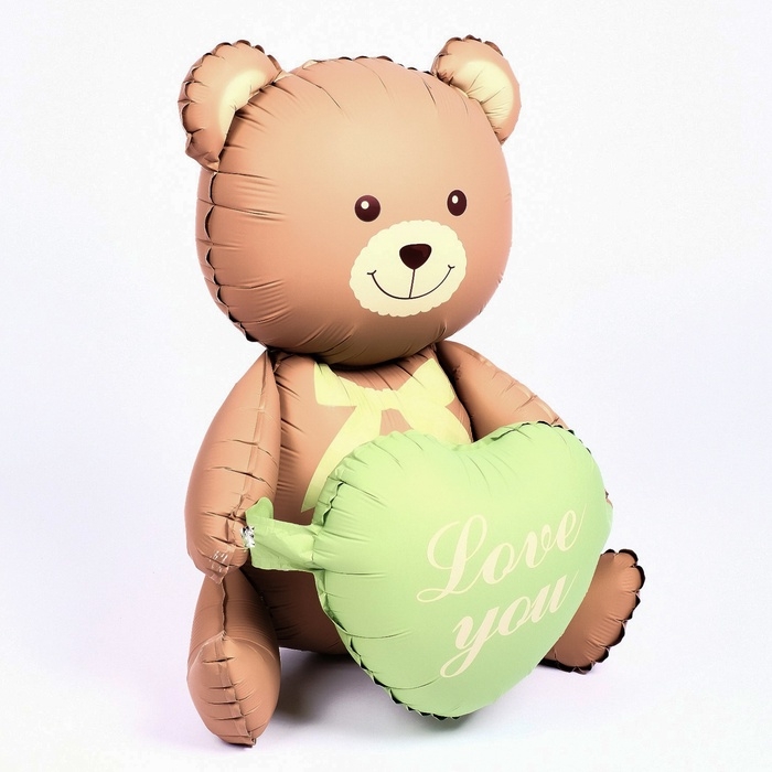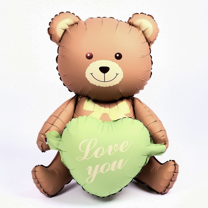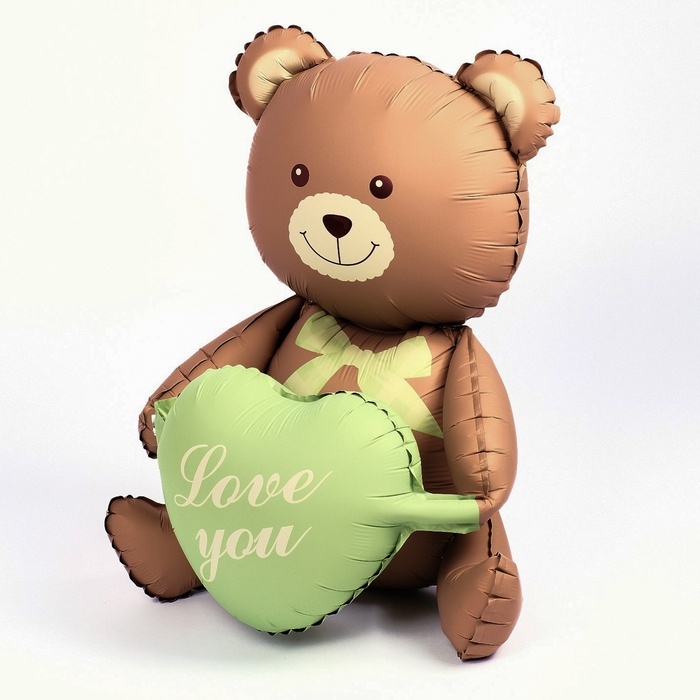 Шар фольгированный 42" «Медвежонок с зелёным сердцем», матовый, цвет шоколадный, под воздух