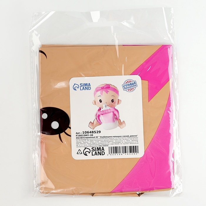 Шар фольгированный 36" «Улыбающаяся малышка с соской. Девочка», под воздух