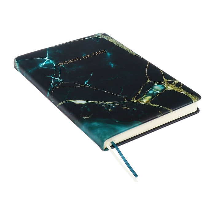 Ежедневник недатир A5 136л кожзам deVENTE. Marble,тв обл с пор,тис ф,перф,ляс,кр бл70,зел