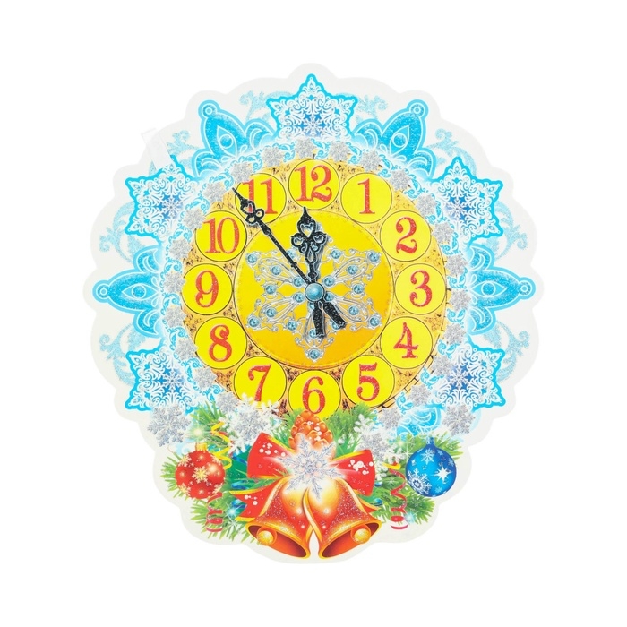 Плакат вырубной "Новогодние часы" глиттер, 25 х 23 см