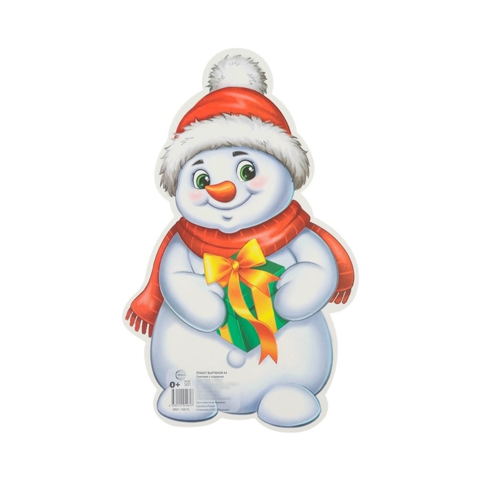 Плакат вырубной "Снеговик с подарком" двухсторонний, 23 х 22 см