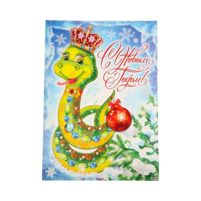 Плакат "С Новым Годом!" символ года, корона, 66 х 49 см