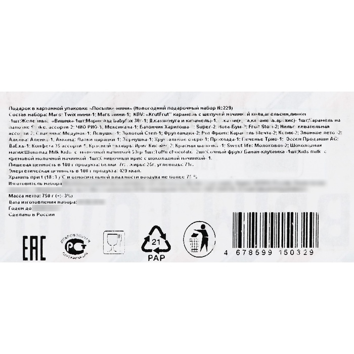 «Посылка-мини» 750 гр. Новогодний подарочный набор №229