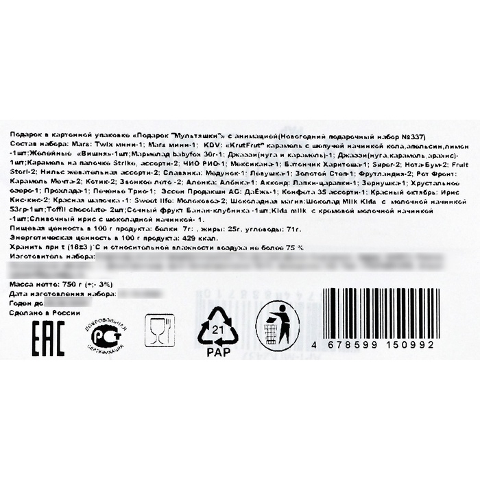 «Подарок "Мультяшки" с анимацией» (750 гр) Новогодний подарочный набор №337