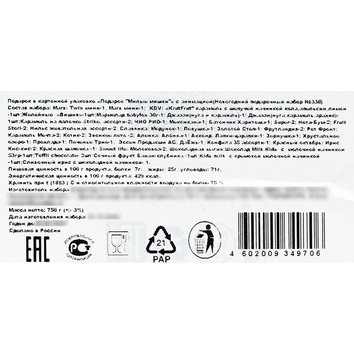 Подарок "Милые мишки" с анимацией (750 гр) Новогодний подарочный набор №338
