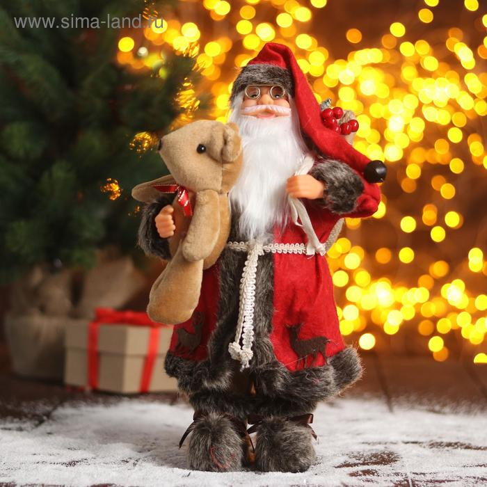 Дед Мороз "В красной шубке с мишкой" 30 см