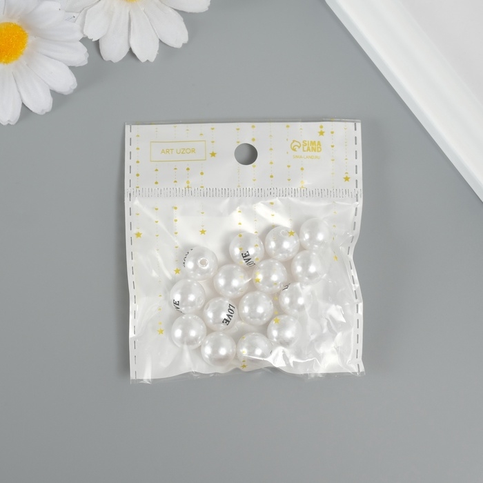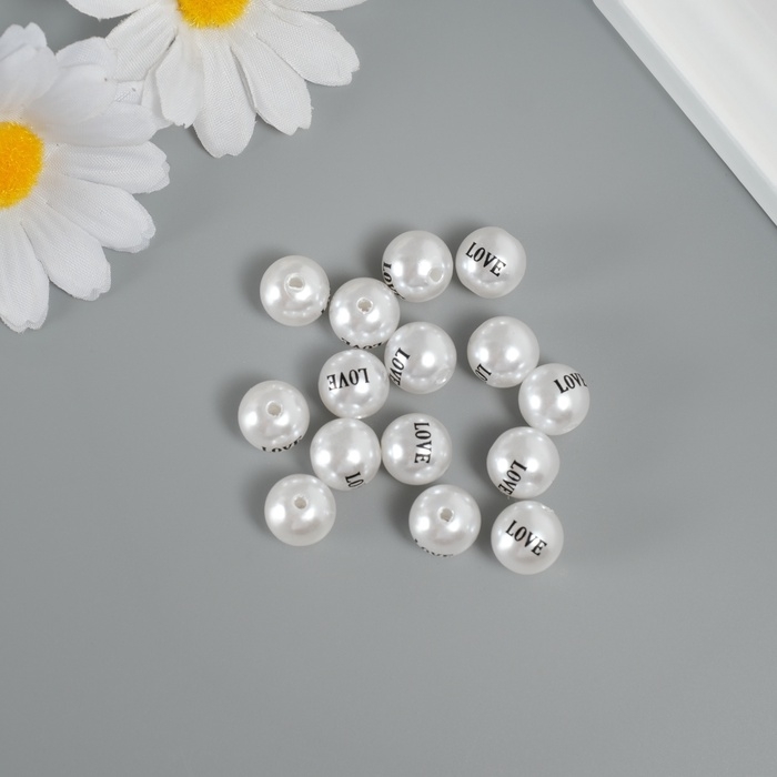 Бусина для творчества пластик "Жемчужный шарик - любовь набор 15 шт d=1,2 см