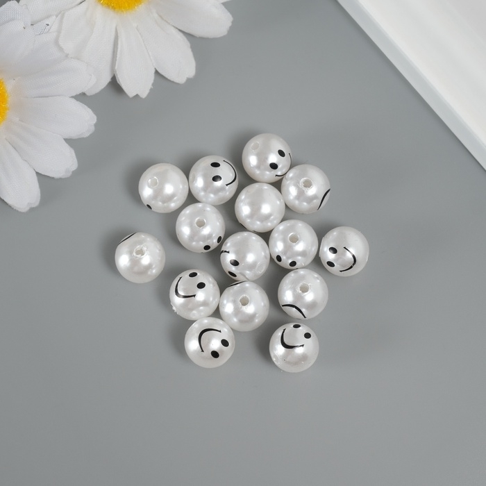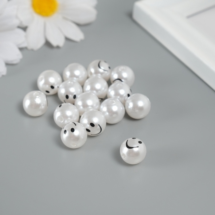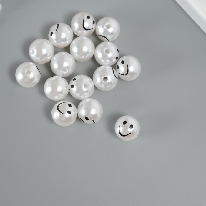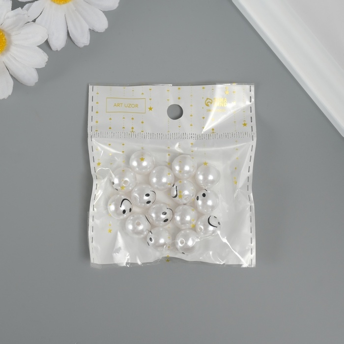 Бусина для творчества пластик "Жемчужный шарик - смайл"набор 15 шт d=1,2 см