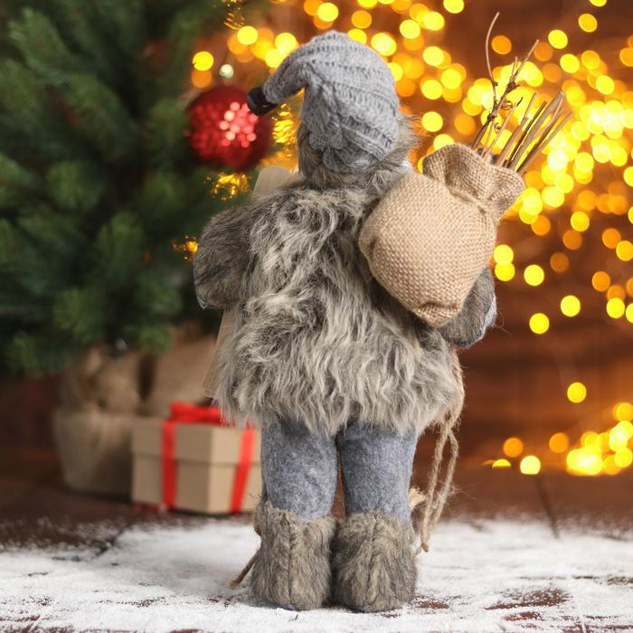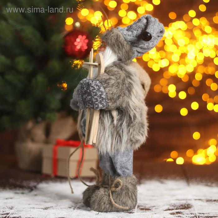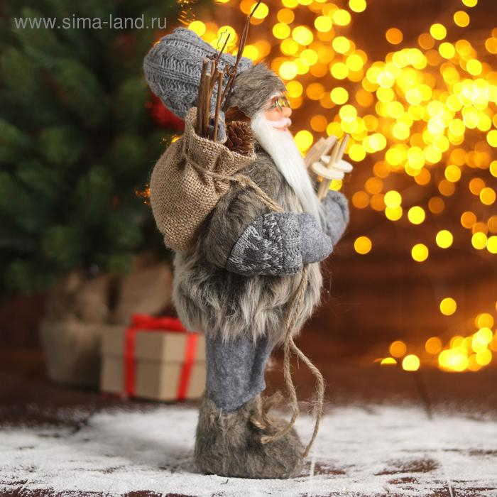 Дед Мороз "В сером костюмчике с лыжами" 30х18 см