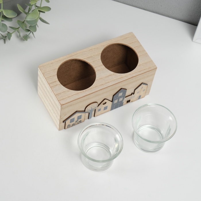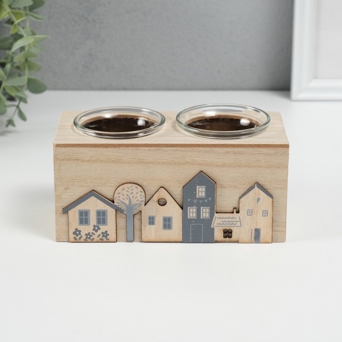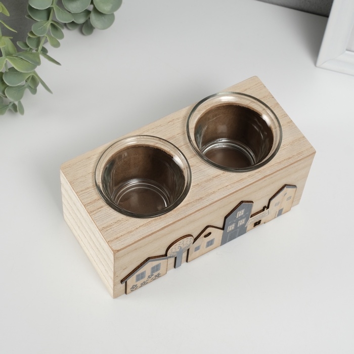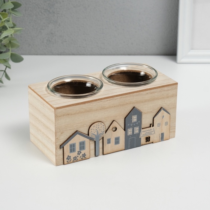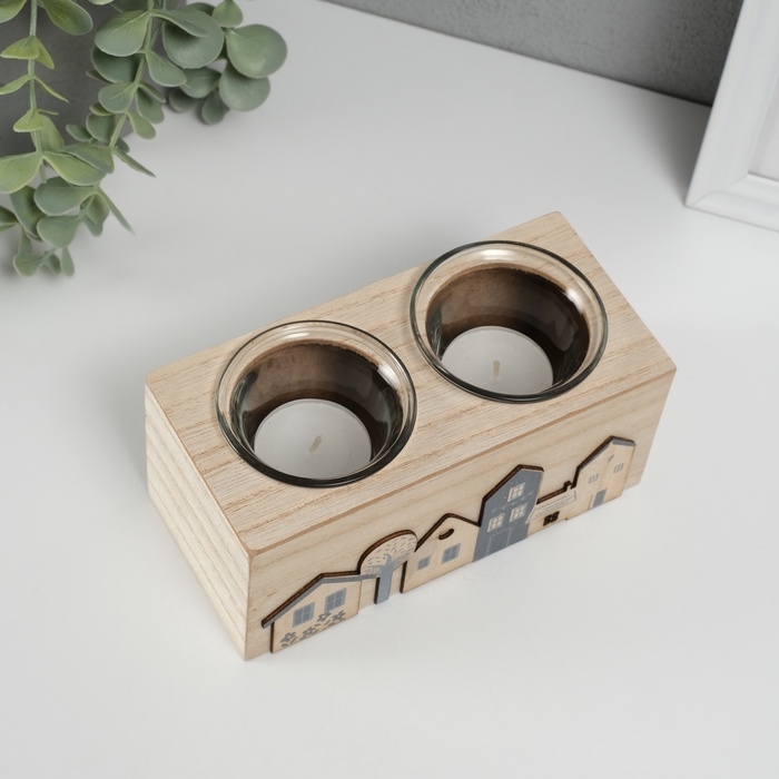 Подсвечник дерево на 2 свечи "Домики" d=4 см 7,7х15,5х8 см