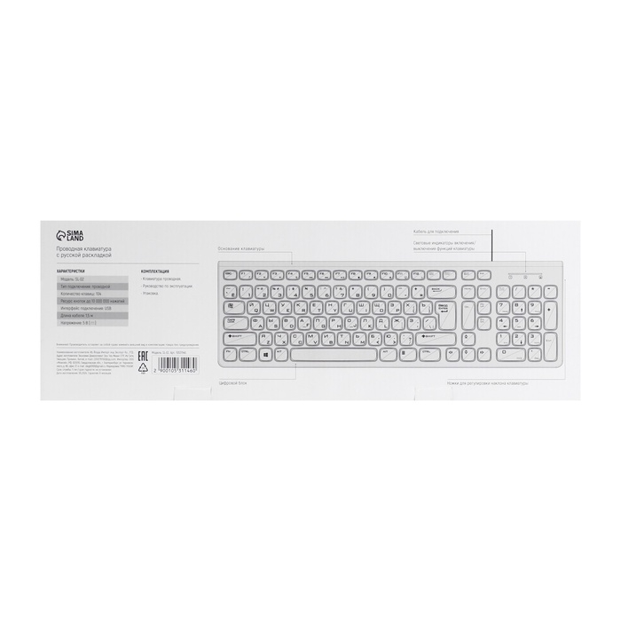 Клавиатура Sima-Land SL-02, мембранная, островная, 101 клавиш, USB, 1.5 м, черная