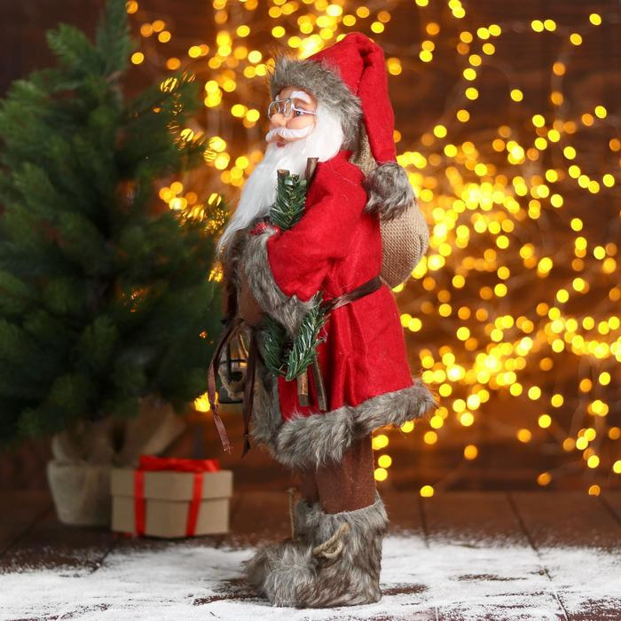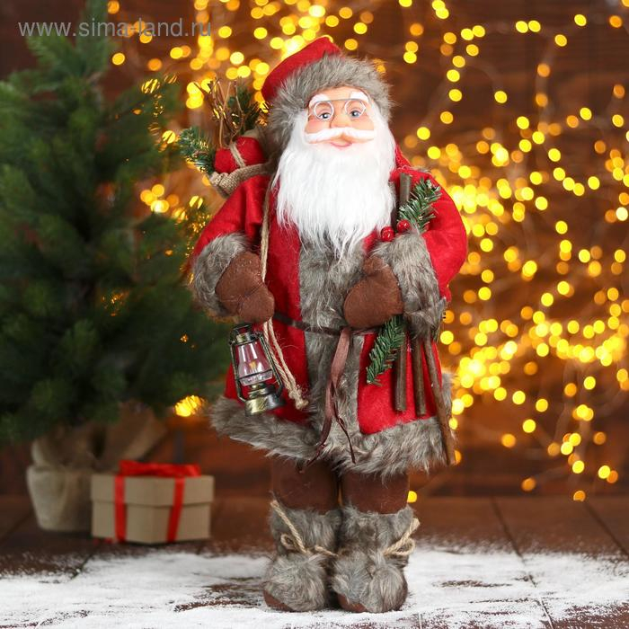 Дед Мороз "В красной шубке с веточками" 45 см