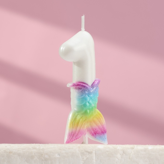 Свеча для торта "Рыбка исполения желаний", цифра "1", белая