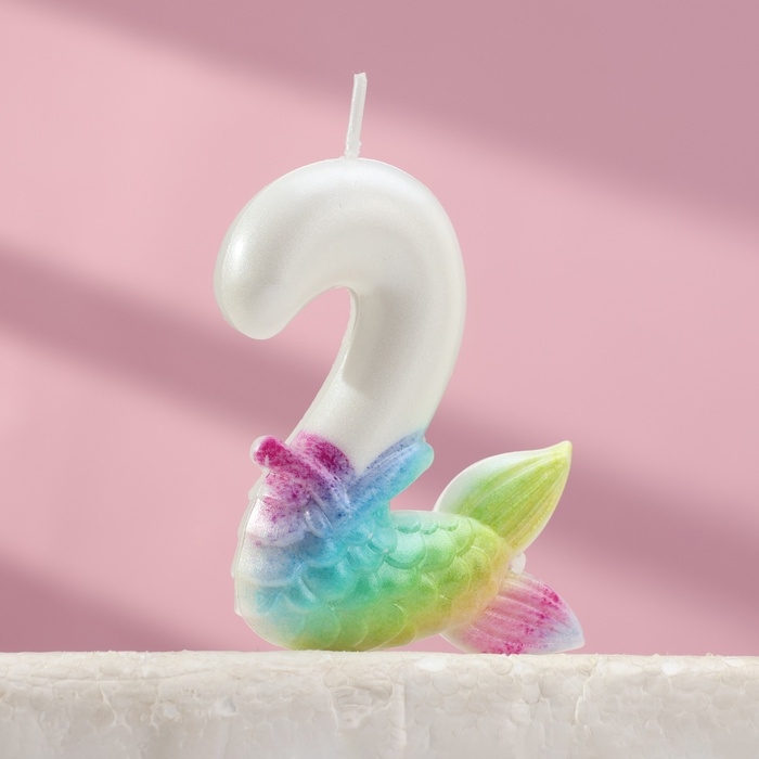 Свеча для торта "Рыбка исполения желаний", цифра "2", белая