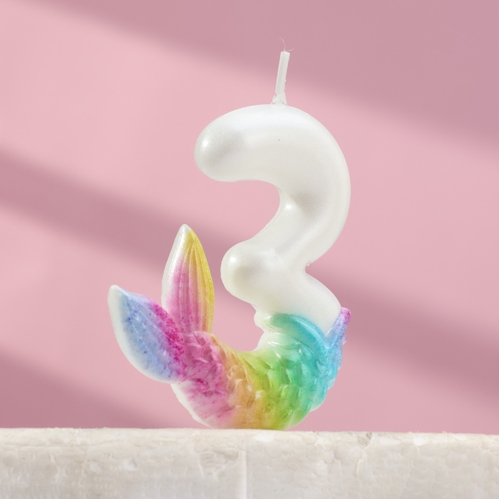 Свеча для торта "Рыбка исполения желаний", цифра "3", белая