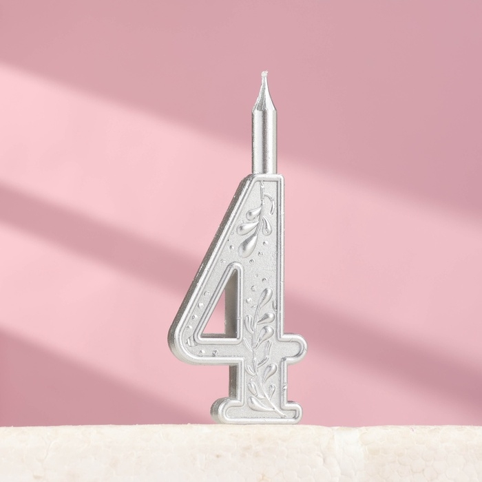 Свеча для торта "Серебряный узор", цифра "4"