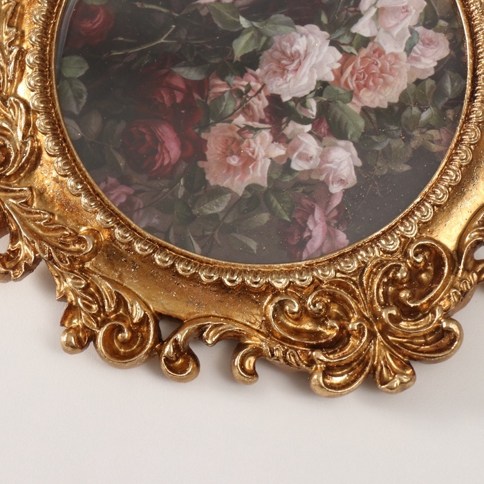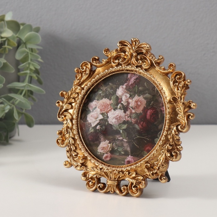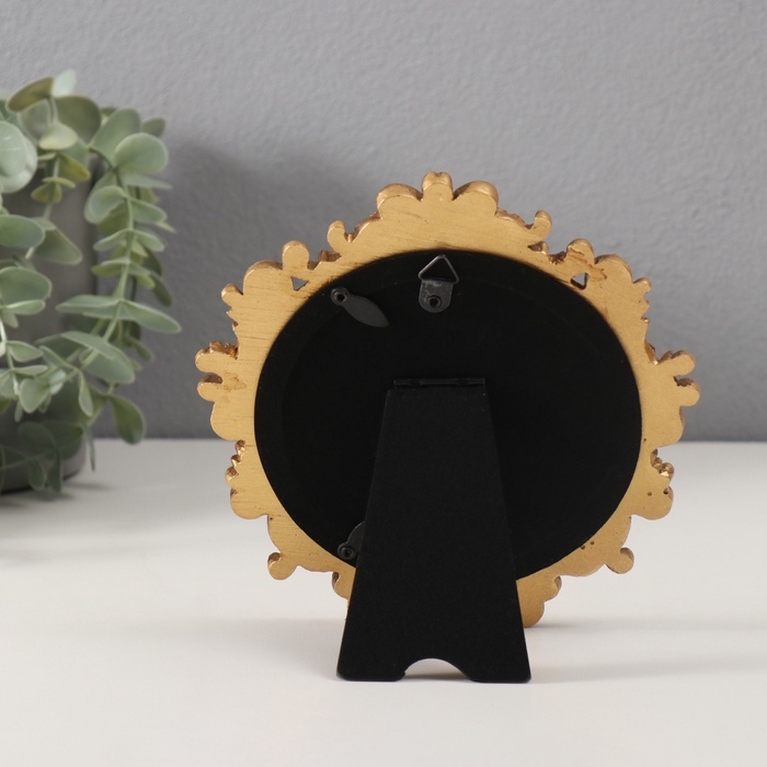 Фоторамка полистоун 10х10 см "Пышные листья" тёмное золото круглая 15,5х15,9 см