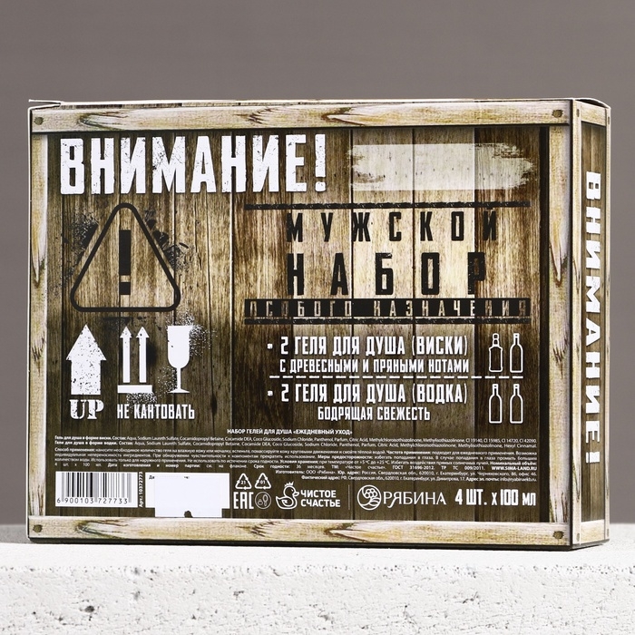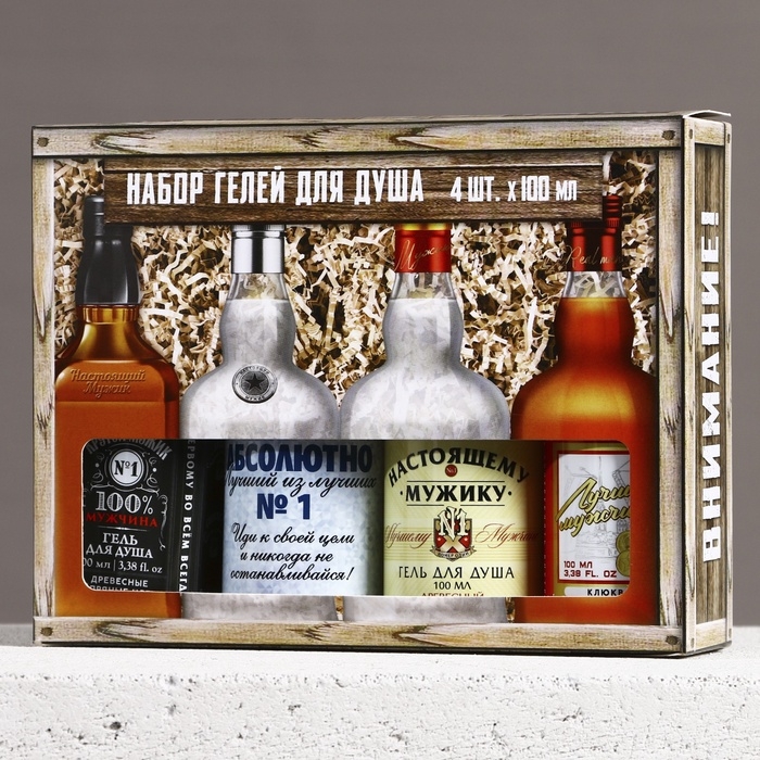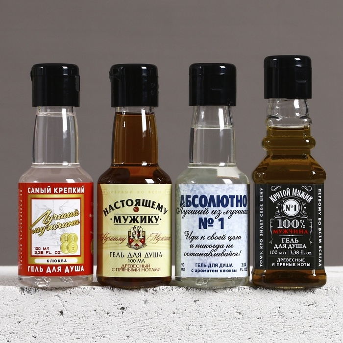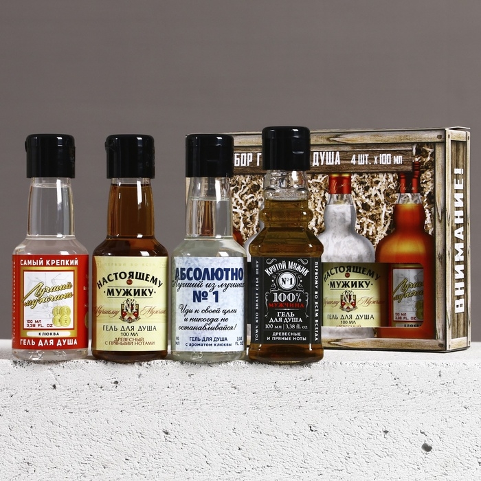 Подарочный набор, гель для душа во флаконах виски и водки, 4 х 100 мл