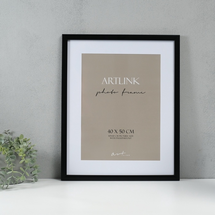 Фоторамка пластик "Gloria" 40x50 с паспарту 30х40 см, чёрный