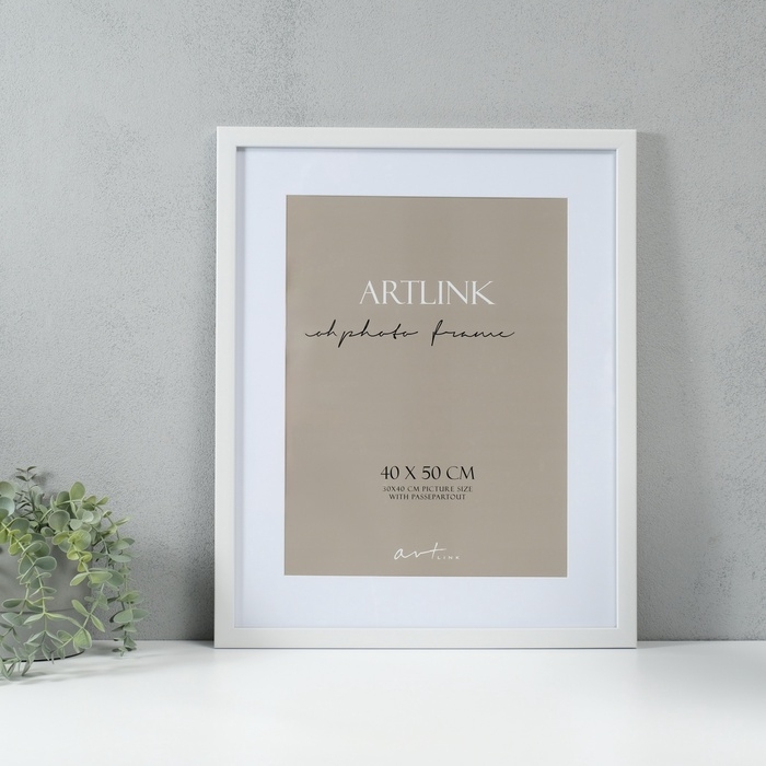 Фоторамка пластик "Gloria" 40x50 с паспарту 30х40 см, белый