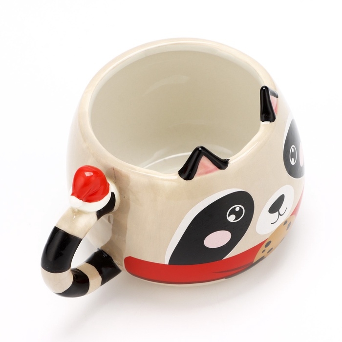 - Эстетичный внешний вид: новогодняя кружка в форме енота станет ярким акцентом на вашем столе и поднимет настроение;