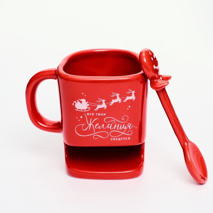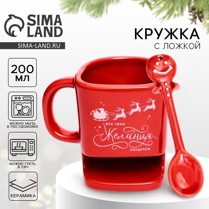 Кружка с ложкой и отсеком для печенья «Желания сбудутся», 200 мл