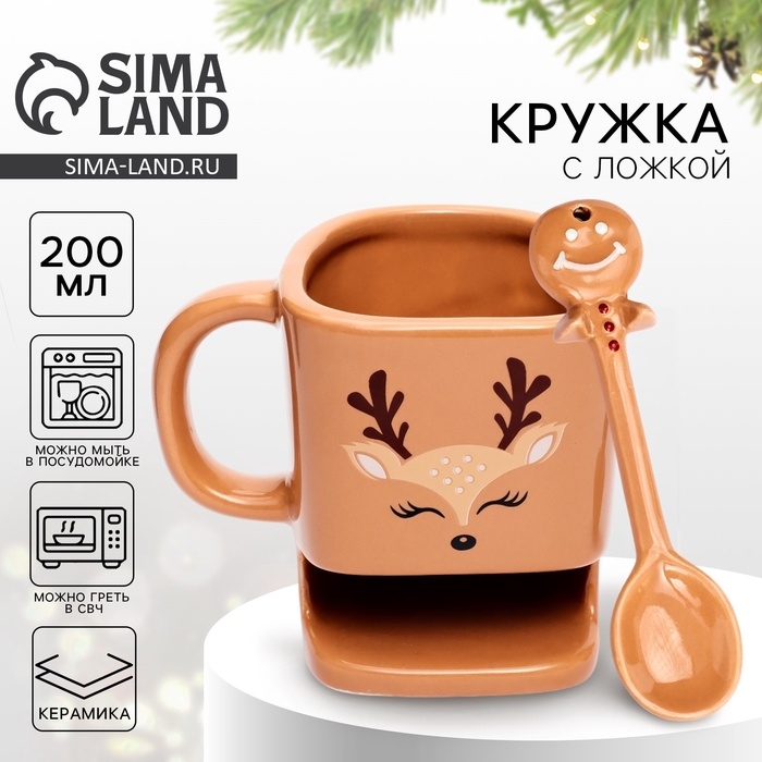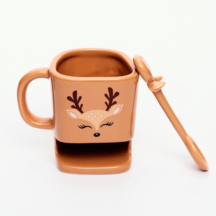 Кружка с ложкой и отсеком для печенья «Олененок», 200 мл