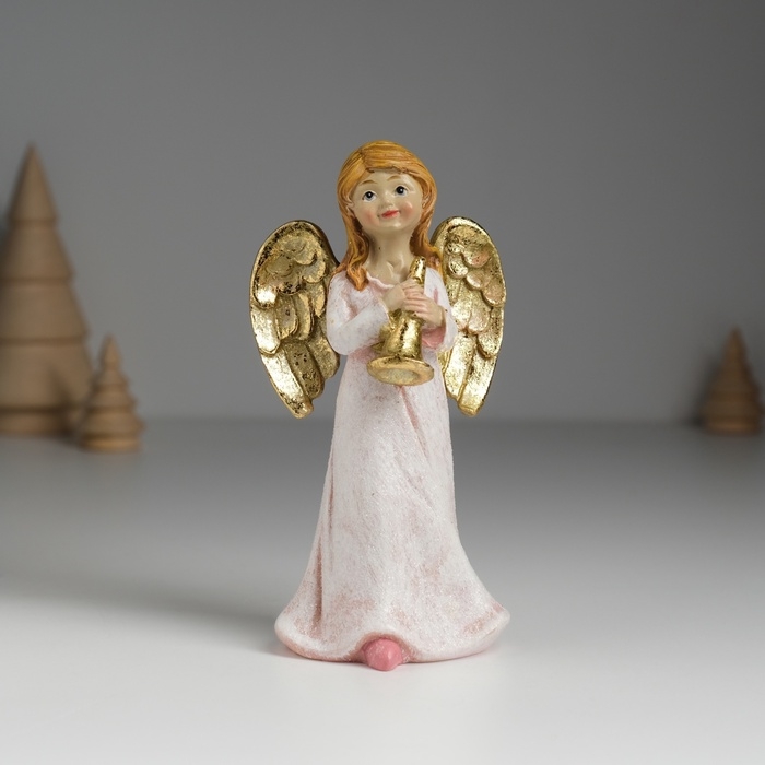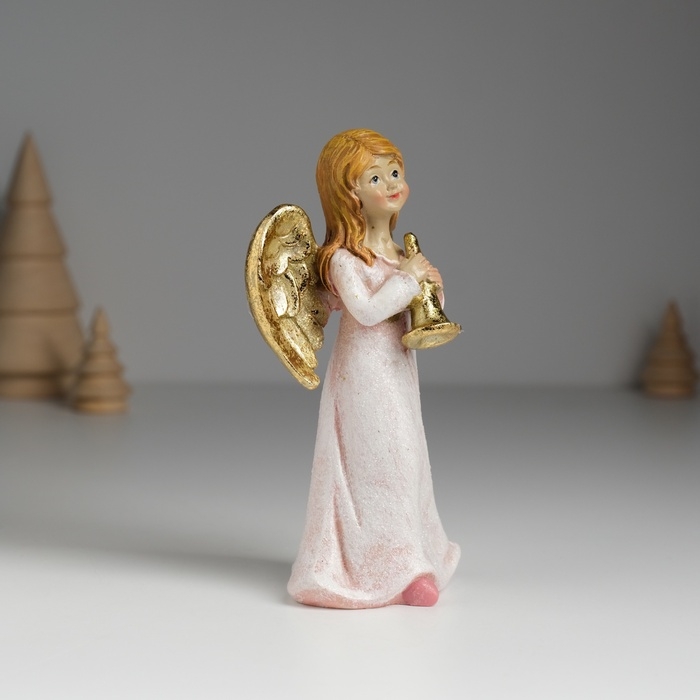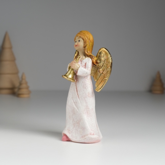 Сувенир полистоун "Ангел музыкант в розовом платье" МИКС 6,5х4,5х13 см