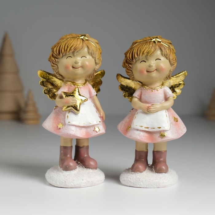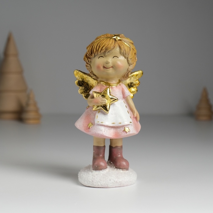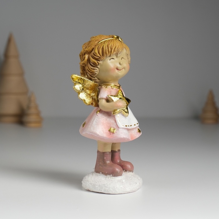 Сувенир полистоун "Ангелочек в розовом платье и белом фартуке" МИКС 6,5х5х12,5 см