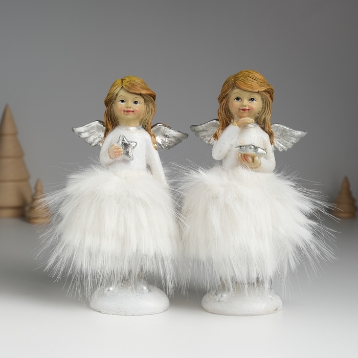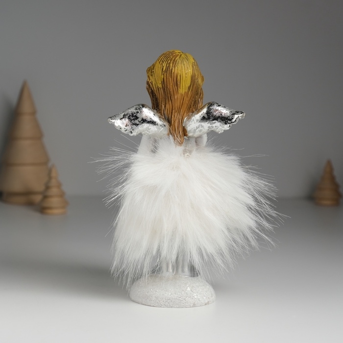 Сувенир полистоун "Ангелочек в белом платье с меховой юбкой" МИКС 8,5х8х15,5 см