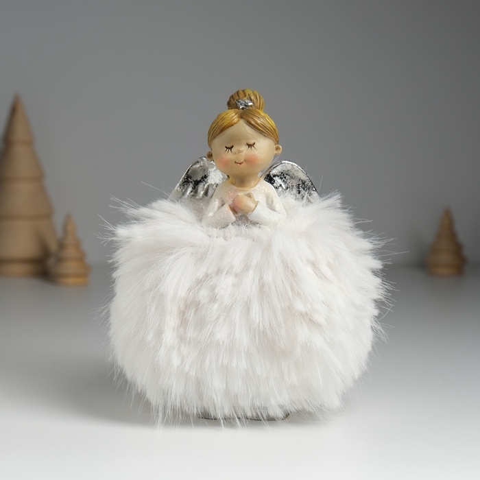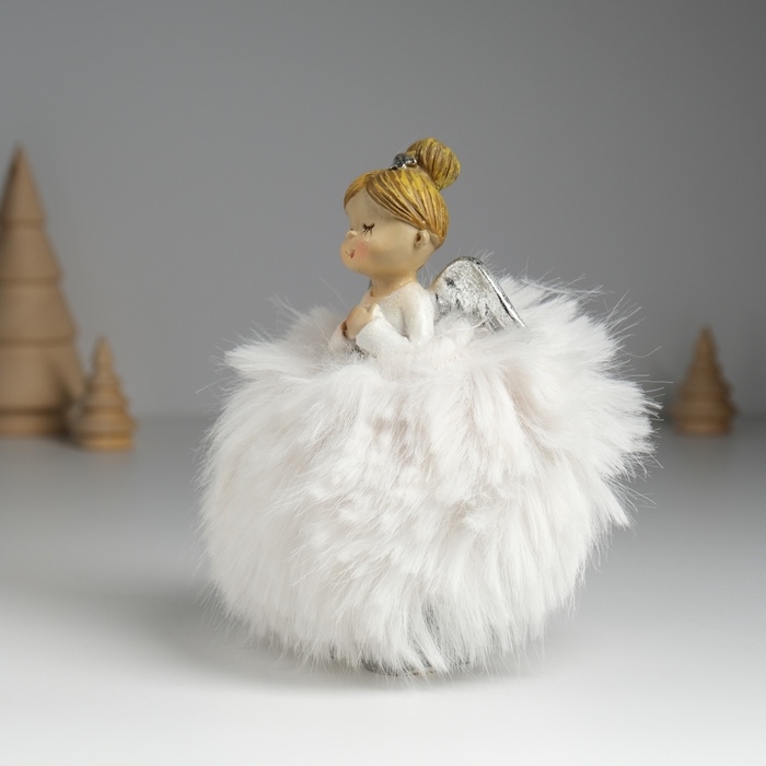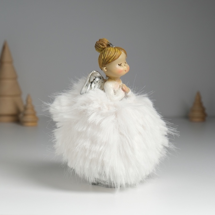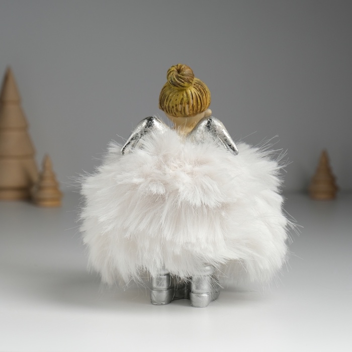 Сувенир полистоун "Ангелочек в белом платье с мехом" 8х6х14 см