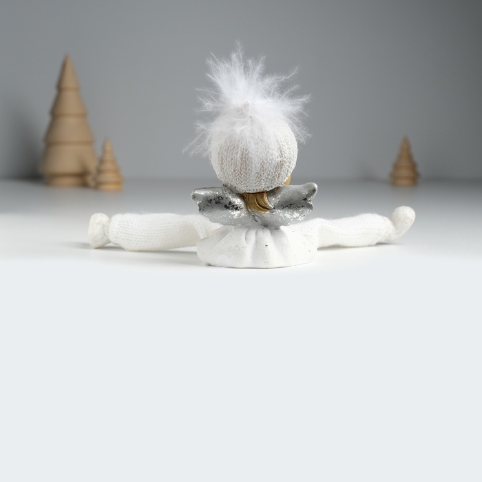 Сувенир полистоун "Ангелочек в белом наряде, в шапке с пухом" сидит 6х4х15 см