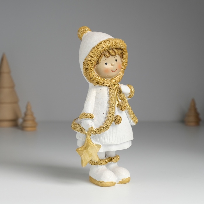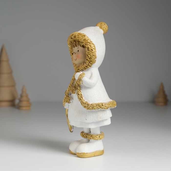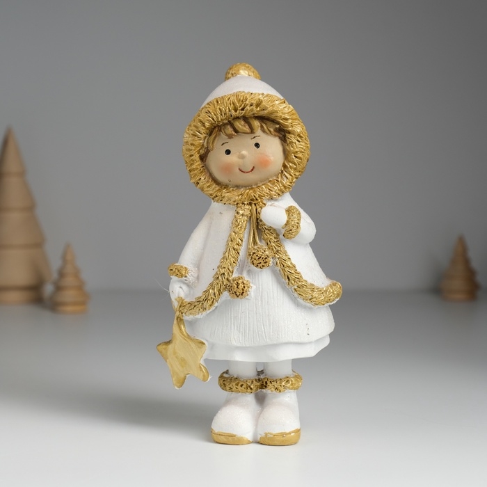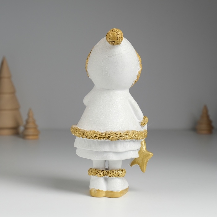 Сувенир полистоун "Малышка в белой шубке с золотым мехом" МИКС 7х5,5х16 см