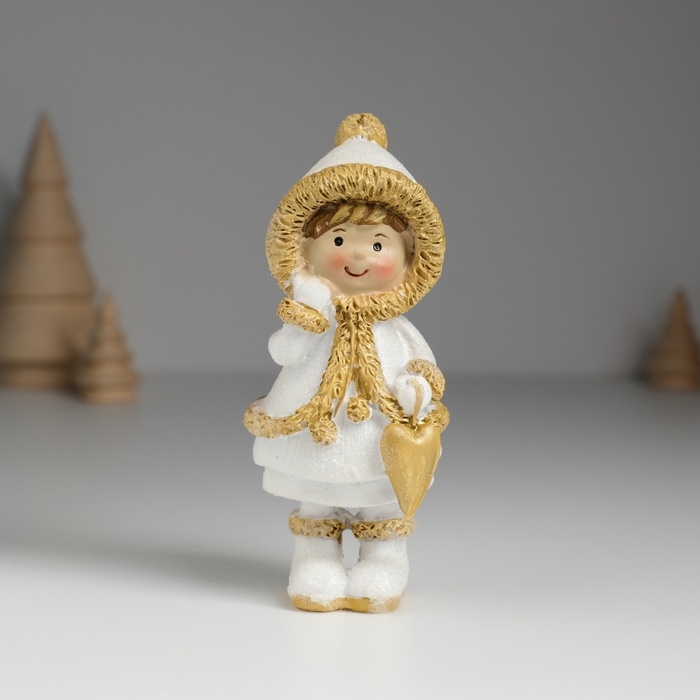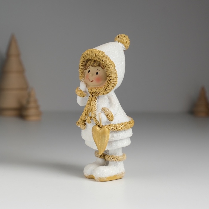 Сувенир полистоун "Малышка в белой шубке в варежках" МИКС 5х4х11,5 см