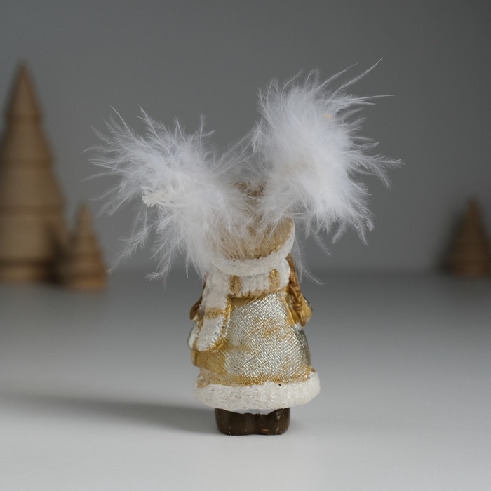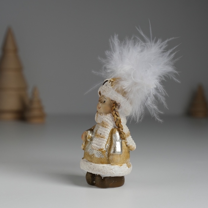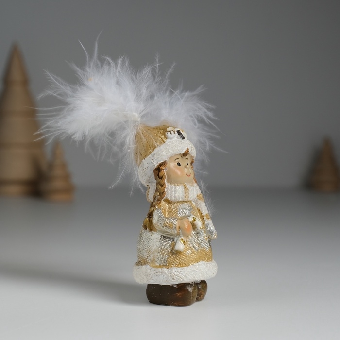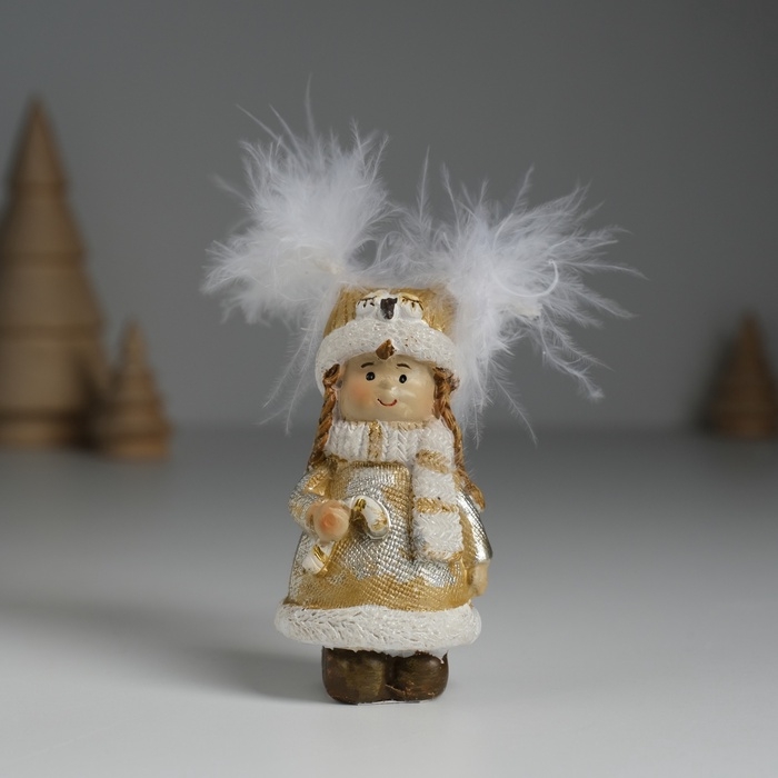 Сувенир полистоун "Девочка в шапке-сове, в золотистой шубке, с леденцом" 3,5х3,5х8 см