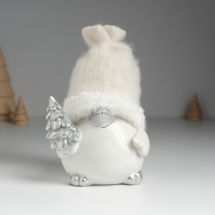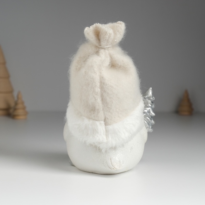 Сувенир полистоун "Воробушек в шапке, с серебристой ёлкой" 10х8,5х13 см