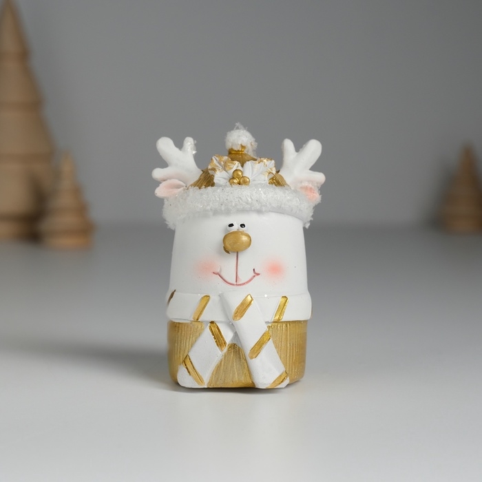 Сувенир полистоун "Олень белый в шапке и шарфике" 4х4х7 см