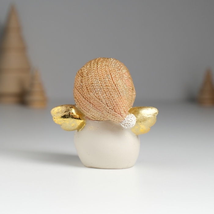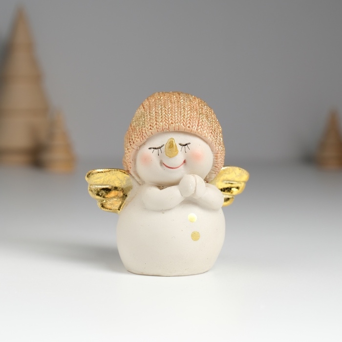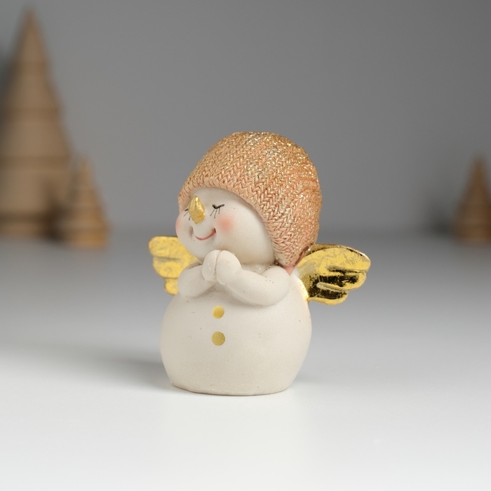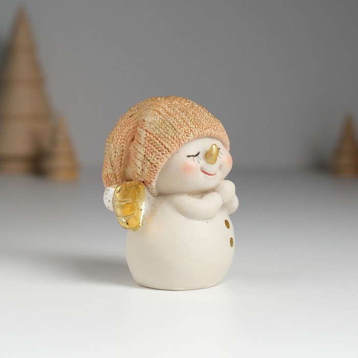 Сувенир полистоун "Снеговик в золотистом вязанном колпаке, с крылышками" 6х4х7,5 см