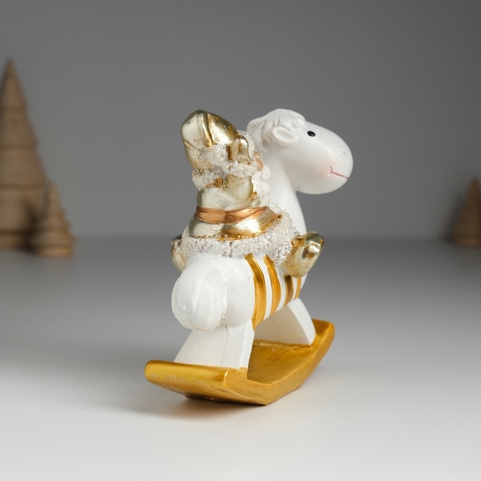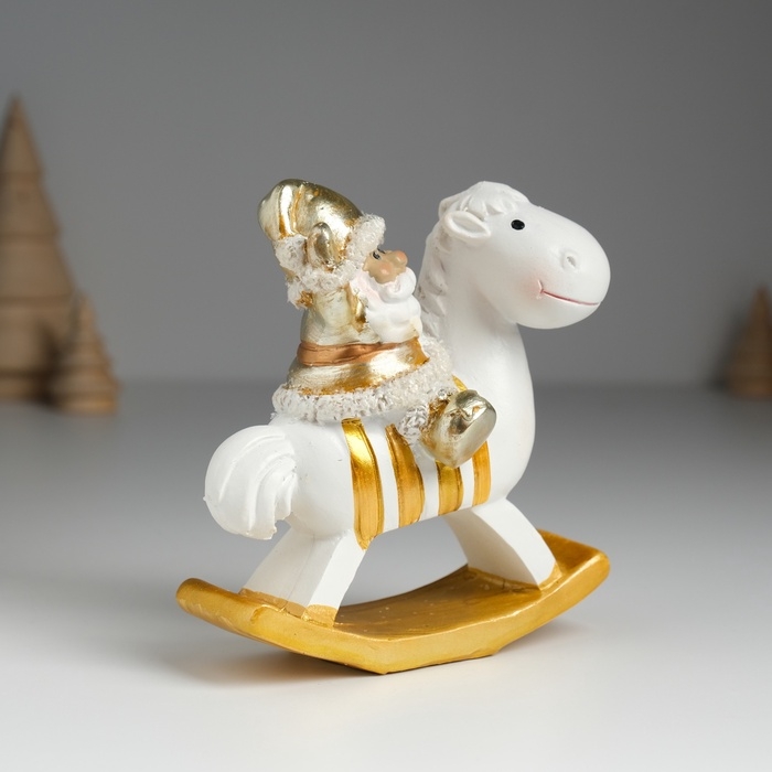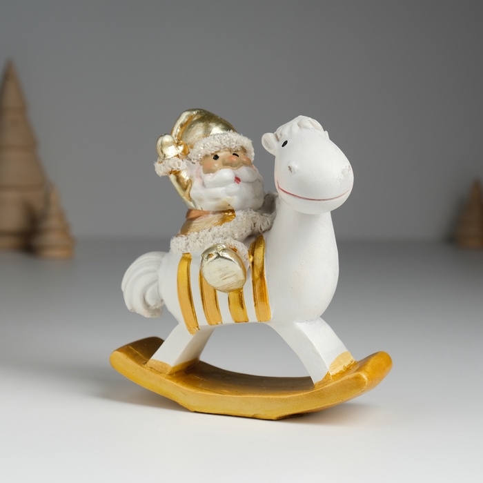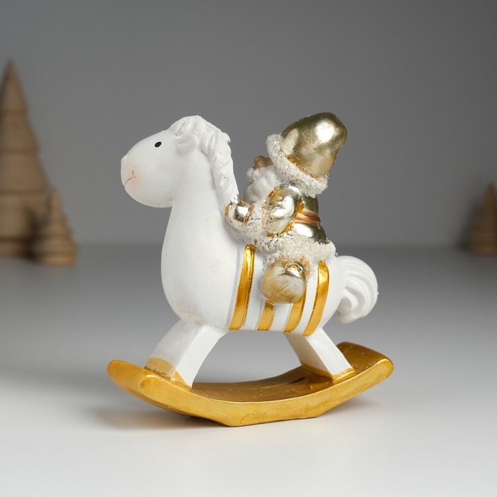 Сувенир полистоун "Дед Мороз в золотом кафтане на лошадке-качалке" 10,5х6х11,5 см