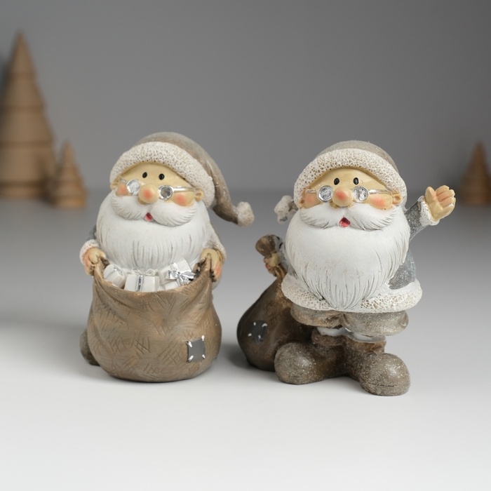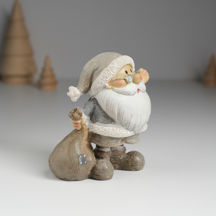 Сувенир полистоун "Дед Мороз в серой шубе в очках, с мешком подарков" МИКС 5,5х6х9 см