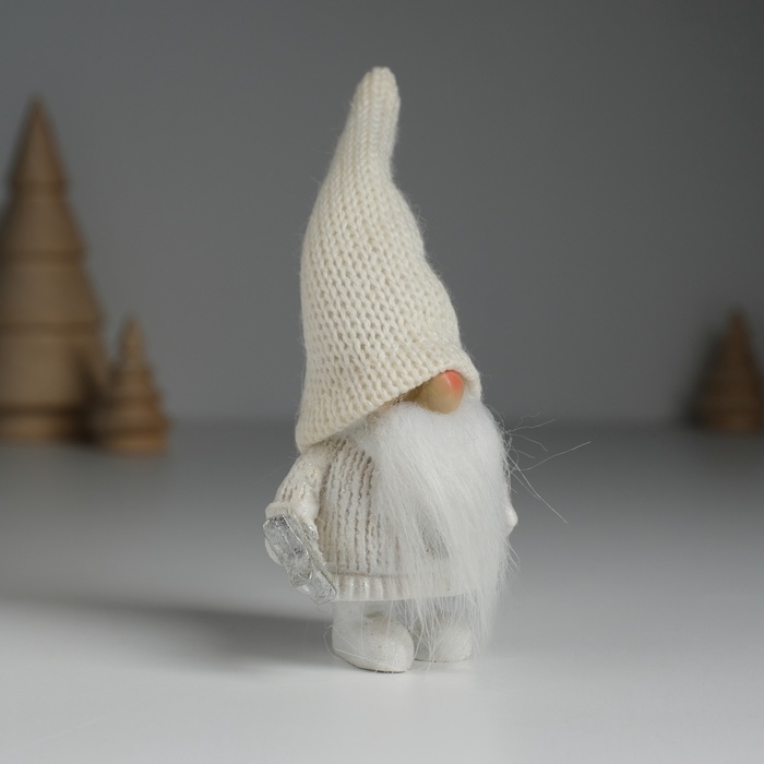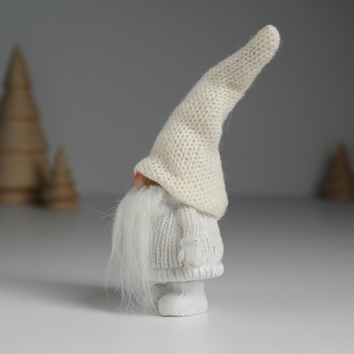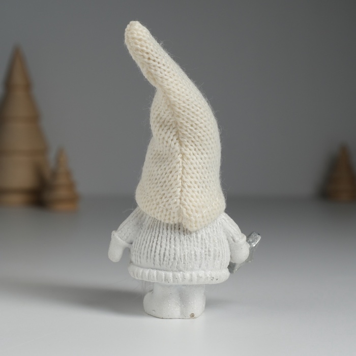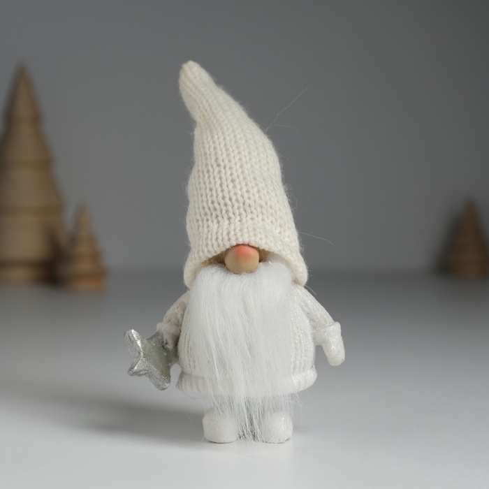 Сувенир полистоун "Дед Мороз в белом вязанном колпаке, с серебристой звёздочкой" 5х3,5х13 см 10326