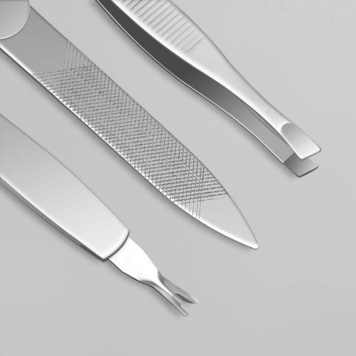 Набор маникюрный «С ЗАБОТОЙ», 6 предметов, в футляре, в PVC - коробке, цвет серый