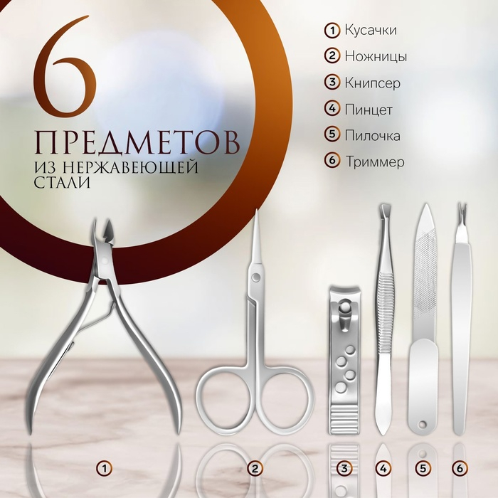 Набор маникюрный, 6 предметов, в футляре, цвет чёрный